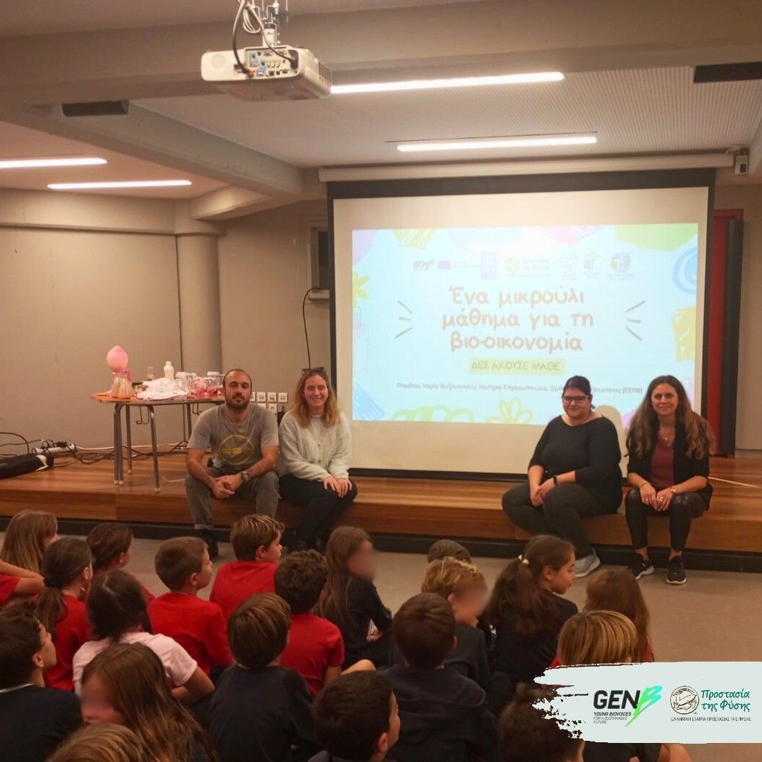 On December 15, 2023, the Educational and the European Projects teams of the HSPN enjoyed the most wonderful company. The Athens College Bodossaki Elementary School hosted the “Hands-on Labs” action within the framework of the European Project GenB. More than 300 students of the 1st, 2nd and 3rd elementary classes participated in a series of experimental and artistic activities revolved around bioeconomy and the use of sustainable materials and energy.