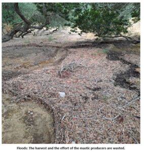 The situation is worsened by sudden weather changes and storms, which now occur before the mastic harvest is complete, as mastic is highly vulnerable to rain. This was experienced in early September 2024, when severe storms and flooding in Southern Chios completely destroyed the harvest.6