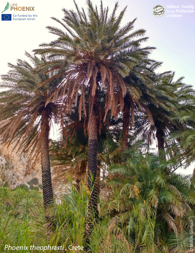 The the Hellenic Society for the Protection of Nature is participating in the LIFE PHOENIX project. The aim of the project is to restore and protect palm grove habitats in Crete and the Canary Islands by highlighting their unique beauty and importance. In Europe there are only two species of native palms of the genus Phoenix, Phoenix canariensis and P. theophrasti, which grow in the Canary Islands (Spain) and Crete (Greece). These create a wide ecological system, from agricultural crops to natural stands, and their uniqueness justifies their inclusion in Annex I of European Directive 92/43/EEC and their designation as a Priority Habitat (Code 9370* ‘Phoenix palm forests’).