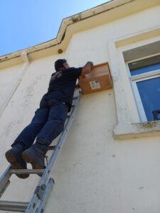 Την επόμενη μέρα συνεχίσαμε με την τοποθέτηση φωλιών και στο Γενικό Λύκειο Καμπάνη. Ταυτόχρονα, κάναμε γυρίσματα για σύντομο βίντεο που θα αξιοποιηθεί σε δράσεις περιβαλλοντικής εκπαίδευσης και ευαισθητοποίησης.