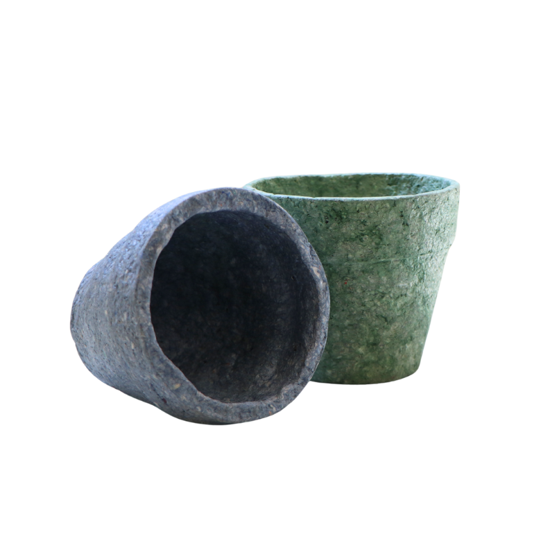 Οι γλάστρες είναι φτιαγμένες από χαρτοπολτό, που προέρχεται από τις σελίδες των αδιάθετων τευχών του περιοδικού δρόμου “σχεδία”. Το χρώμα τους είναι παρόμοιο με αυτό της εικόνας. Καθώς κάθε κομμάτι είναι χειροποίητο, υπάρχουν μικρές παραλλαγές στην απόχρωση.