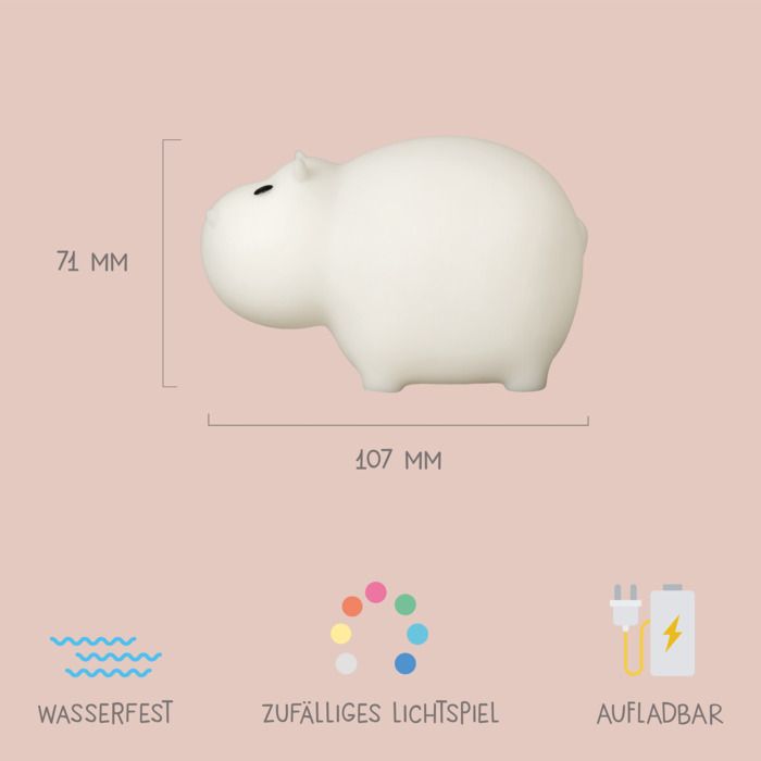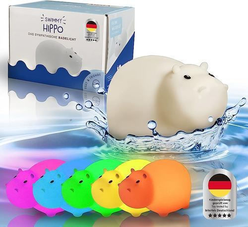 Μια φωτεινή παρέα στο μπάνιο και ένας γλυκός φίλος στον ύπνο! Φέρτε μαγεία και ασφάλεια στο παιδικό μπάνιο με το  Swimmy Hippo της MEGALIGHT – ένα επαναφορτιζόμενο, αδιάβροχο LED φωτάκι με χαριτωμένο σχεδιασμό ιπποπόταμου και χρωματιστά εφέ φωτισμού.